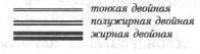 Как и одинарные линейки, Д. л. может быть тонкой (две тонкие линии толщиной по 0,10 или 0,15 мм с промежутком 0,35 мм), полужирной (две утолщенные линии одной толщины по 0,35 мм с промежутком 0,50 мм), жирной (особенно утолщенные две линии одинаковой толщины по 0,90 мм с промежутком 0,50 мм). Тонкой Д. л. обычно отделяют части сдвоенных, строенных и т. д. таблиц.
