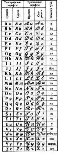 Таблица латинского алфавита В изданиях на рус. яз. буквы Л. а. используют в качестве символов мат. обозначений, символов хим. элементов, обозначений физ. величин и их единиц. В мат. формулах буквы Л. а. принято выделять курсивом.